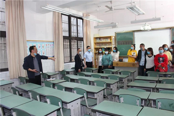 4月27日,东升小学校长干兴志和负责行政及老师们早早来到校门口迎接五、六年级的孩子们平安返校。干兴志校长说:“看着孩子们安静有序地接受体温检测入校,一切的辛苦和付出都是值得的。”