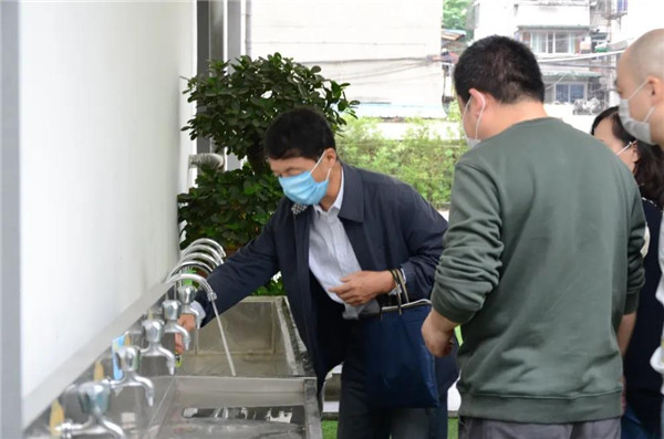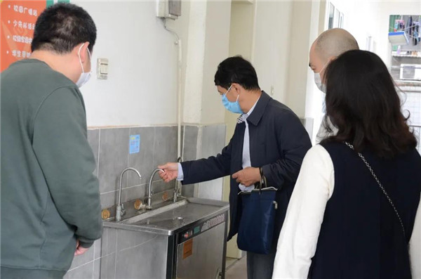 据了解,在成都市鼓楼小学张欣副校长及行政人员的陪同下,专家们查看了校园环境、各项设施设备,重点了解学校在师生摸排、体温监测、上放学、午餐就餐、食堂食品卫生、校园消防安全、防疫物资储备、卫生消杀等方面的具体情况。