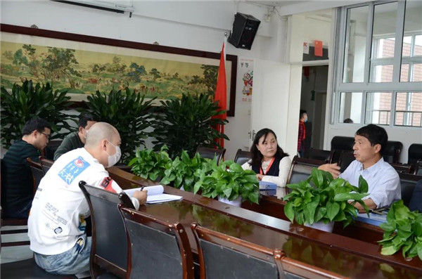 随后,一行人来到学校会议室进行座谈,张欣副校长对学校各方面工作进行了全面的汇报。听取汇报后,两位督学对学校各方面工作给予了充分肯定。周光岑督学提到,学校疫情防控工作做得细致完善,各方面考虑得当,做到了“重心、用心、精心、细心”。同时,他还对学校提出了许多建设性的意见,特别提出在疫情背景下,学校还可研究信息技术对学校棋类课程的影响,可见学校对此类课程的用心。