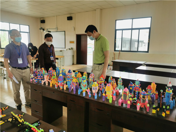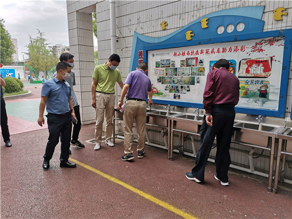 余飞一行在检查过程中体验了学生洗手池、询问学生口罩佩戴情况、查看学校的场地和功能室情况、了解学校师生到校情况及健康情况。并对学校防疫宣传、地面标识等工作给予了具体指导,要求学校要高度重视防疫工作,关心师生身心健康,做好打持久战的准备,在做好教育教学工作的同时决不放松疫情防控工作,确保校园筑起绿色健康平安线,让社会满意,让家长满意。