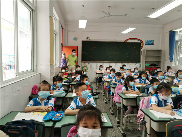 在学校戚怀顺校长、刘立书记等的陪同下,余飞一行参观了校园,了解了学生复学的情况,重点检查了学校观察室、备用教室、保健室、体温检测系统、学生洗手池等重点防疫区域和防疫物资的储备情况,还到班检查了学生学习情况。