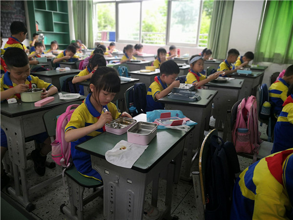 相比之下二年级的哥哥姐姐无论是排队、上课,还是就餐、放学,都是那么规范,朝气蓬勃的小脸上溢满对新学期的期待。