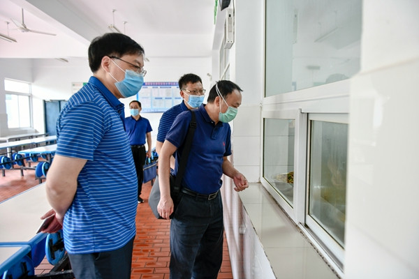 督查组一行在西郊小学校长李支德的陪同下视导食堂、巡视校园。督查组详细询问了学校的疫情防控管理、教育教学秩序及开学评估开展情况,实地察看了学校留观室、物资储备室、食堂等场所,同时对学校门卫管理、消防安全、食品卫生管理等开展督导检查。