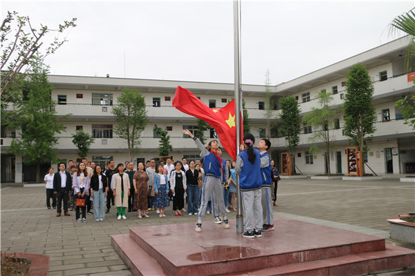 5月11日上午,成都市青白江区龙王学校开展“致敬抗‘疫’先锋•争做新时代好少年”主题升旗仪式活动。特殊时期,教师们来到操场,同学们则在教室,通过收听广播的方式,全程参与学校2020年第一个升旗仪式。
