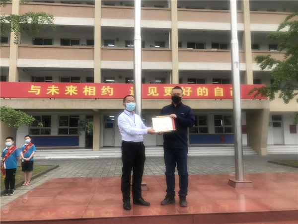 2020年5月11日,秦世松校长在升旗仪式上为刘健老师颁发了辰居路小学健康副校长聘书。在疫情防控前期,刘健老师便对辰居路小学的卫生防疫工作做了大量的专业指导。不仅经常到校指导学校卫生工作,举办新冠肺炎防疫防控宣传教育讲座,还现场指导学校的复学演练,对学校留观室的工作人员及保健老师进行了专业的培训,详细讲解了消毒水配置浓度等需要注意的事项。