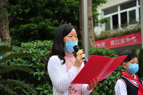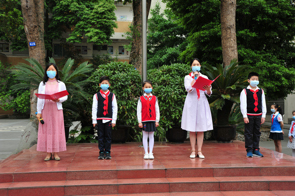 2020年5月11日上午,大邑县北街小学举行了“致敬守护者,做好接班人”主题升旗仪式。为了避免聚集风险,学校改变了在操场集中的传统做法,采取年级、班级轮流参加升旗仪式的方式,本周由一至六年级所有1班的孩子们在操场参加升旗仪式,其它班级在室内同步进行。