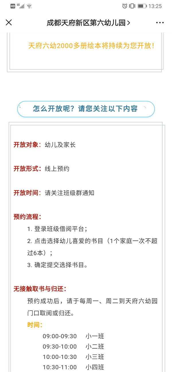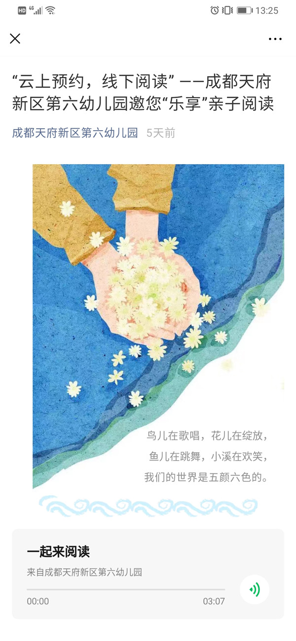这是一次特殊的假期,亦是一个和以往不同的读书月,为丰富幼儿及家长在疫情期间的亲子阅读活动,成都天府新区第六幼儿园(以下简称:天府六幼)以世界读书日为契机,开启“云上预约,线下阅读”活动,用绘本与幼儿传递情感,用阅读驱散病毒的阴霾,用亲子陪伴温暖幼儿心灵。