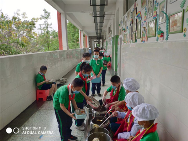 新冠肺炎疫情防控期间,为了更好地保障全校师生在校午餐期间的身体健康和生命安全,成都市海滨小学的全体教师及学生严格按照学校制定的就餐方案执行分班分隔就餐。