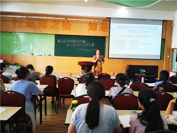 参观评分结束后,班主任们在多媒体教室集中,黄蕾副校长解读了本学期学校德育工作计划,指导班主任围绕本期德育主题“我的美丽校园”,从小切口入手,挖掘德育内涵,开展好班队课活动、班级风采展示以及班级文化展板创办的德育活动。