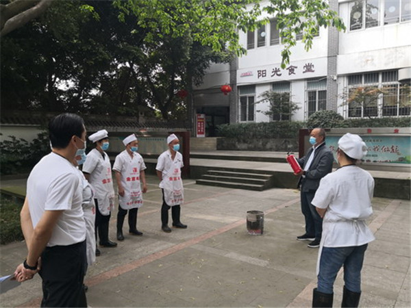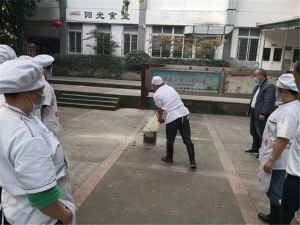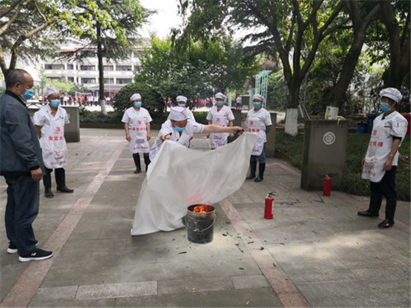 为全面提升学校食堂工作人员消防安全意识,增加食堂工作人员火灾逃生经验,提高实战技能,构建“和谐校园、平安校园”的目标,2020年5月18日,成都市文翁实验小学组织食堂全体工作人员开展消防演练培训。