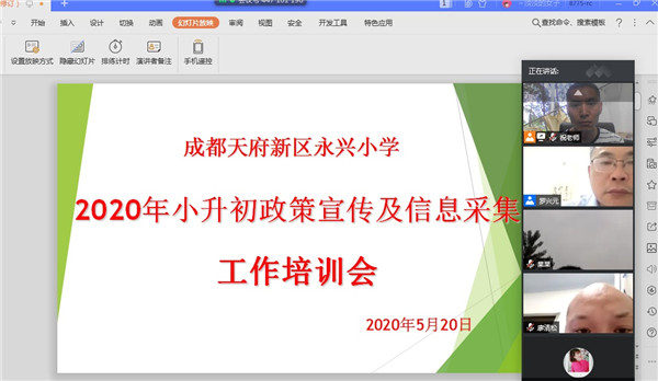 为了让家长全面、清晰地了解2020年成都市小升初政策,5月20日晚7:30,成都天府新区永兴小学在线对全校220余名毕业生家长进行了2020年小升初政策宣传及信息采集培训。