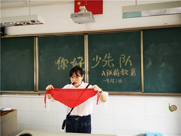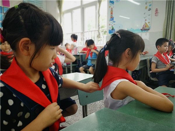 “我想加入少先队!”“我想戴上红领巾!”这是一年级小朋友们最大的心愿。为了能尽早通过组织的考验,成为光荣的少先队员,成都市科华中路小学大队部利用每周队会课对一年级的同学们进行了队前教育。在老师的帮助下,同学们学习入队的基本标准——“六知、六会、一做”,争取早日加入少先队组织。