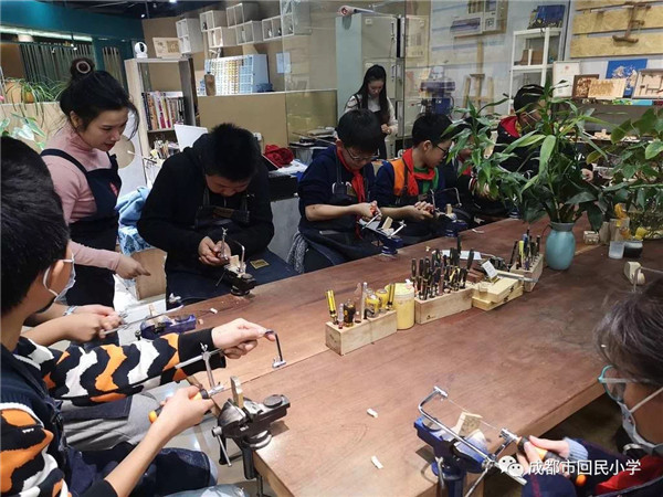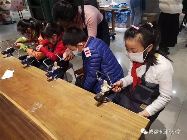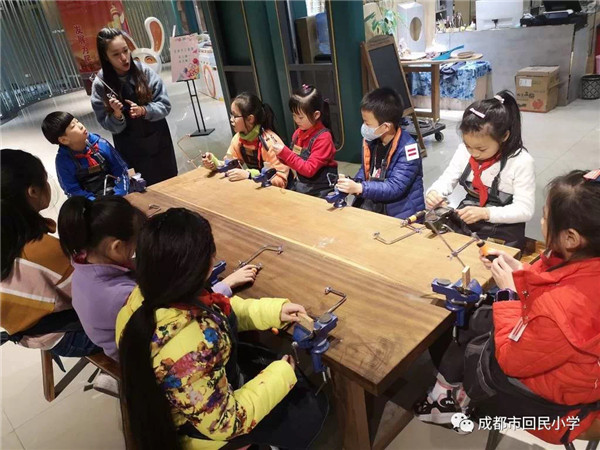 为教育引导学生树立热爱劳动的思想,养成热爱劳动的习惯,培养吃苦耐劳,艰苦奋斗的精神。回民小学结合社会实践活动进行劳动教育,让孩子们爱上劳动。每年的学雷锋纪念日,老师和同学会一起走进西华门社区进行清洁活动。孩子们带上水桶、抹布、扫帚等清洁工具,打扫院落,清理卫生死角。大家团结协作,没有一个说苦叫累,都抢着脏活累活干,个个干劲十足。通过社会实践系列活动孩子们感受到了劳动的快乐,激发劳动激情,培养了孩子们从小的劳动意识和劳动能力,尊重和感谢劳动者的社会情感。此外,学校还结合市级场馆文化课题,携手西华门社区,带领学生来到艺觉木工厂制作石犀牛木制工艺品。在木工厂里孩子们学习了榫卯结构、木料分类、木艺工具等知识,并将成都市博物馆的镇馆之宝——石犀牛,制作成了憨态可掬的木制工艺品。在孩子们动手操作的过程中,既增长了劳动技能,又激发了孩子们创作的激情和对美好生活的感悟。