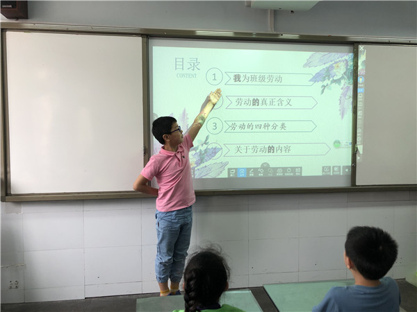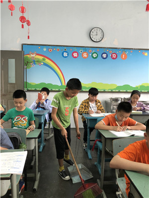 班级管理中,人人都是小主人,人人都是劳动者,一生一岗位,为班级做贡献。结合学校的劳动实际,教给一些力所能及的劳动。扫地、排课桌、管理图书、管理电教设备、做值日等,教给学生劳动的方法。