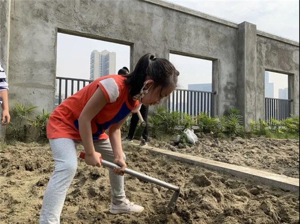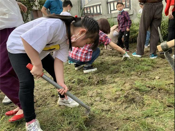 迎着初夏的朝阳,同学们已经手拿劳动工具,在校门有序排好了队伍,间隔一米来到所在班级种植区域,看着长满杂草的两块土地,同学们纷纷表示,劳动最光荣,撸起袖子加油干!同学们各司其职,团结一致,开垦土地、除草、松土、捡石头、搬土块……没有一个人叫苦叫累,虽然脸上都挂着汗水,但依然流露出能一起劳动的开心和快乐。