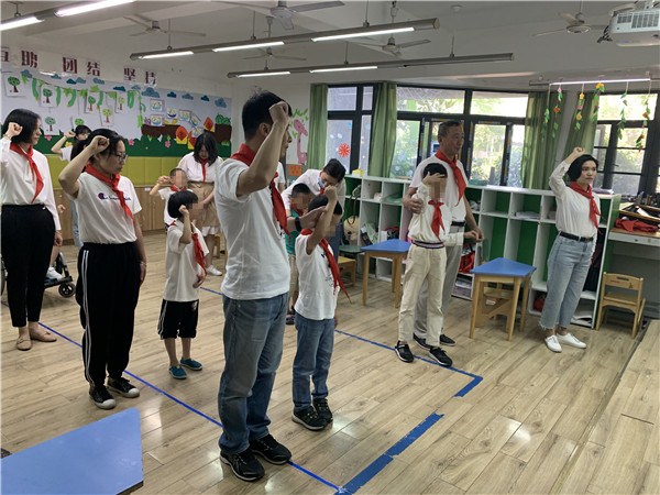 2020年5月29日上午,成都市青羊区特殊教育学校举行了“迎接少代会争做好队员”线上入队仪式。为开展好此次入队仪式,一年级进行了队前教育,了解红领巾、队旗、队徽、队礼、呼号及其意义,学唱《中国少年先锋队队歌》。