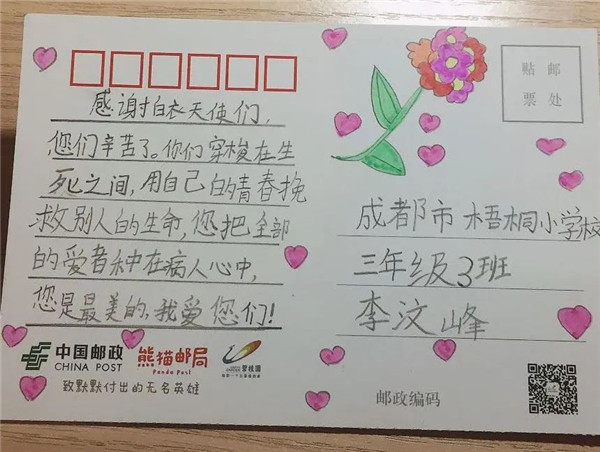 日前,中国邮政与21片区合作学校一同开展“‘致敬英雄’——写给白衣战士的一封信”活动。成都市梧桐小学有幸参与其中。