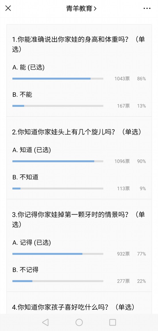 十道问题,得票率最高的是“你知道你家孩子喜好吃什么”。