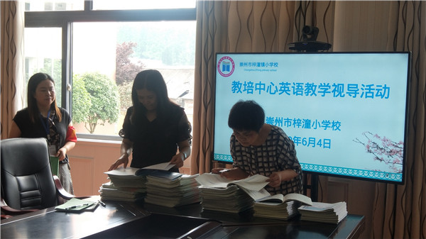 视导组深入课堂,观摩了梓潼小学两节英语课。课后,视导组对梓潼小学的英语教学常规进行视导。视导组成员魏琼老师高度评价了梓潼小学的英语教学和管理工作,肯定了英语教师的教学常规,并提出一些建议。