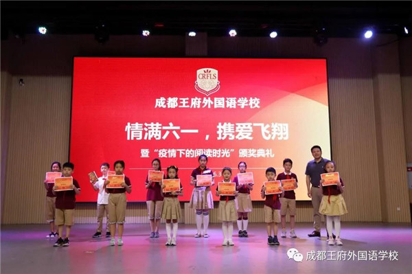 2020年6月3日上午,成都王府外国语学校“情满六一·携爱飞翔”暨“疫情下的阅读时光”颁奖典礼在王府演播厅顺利举行。2020年寒假,我们共同经历了一场突如其来的疫情,举国上下,万众一心。在这场“战役”中,医生护士等逆行者冲锋在前,而宅在家的王府学子也用写作、绘画和微视频的方式向奋斗在抗疫一线的英雄们致敬!