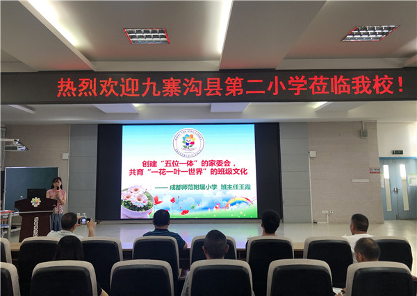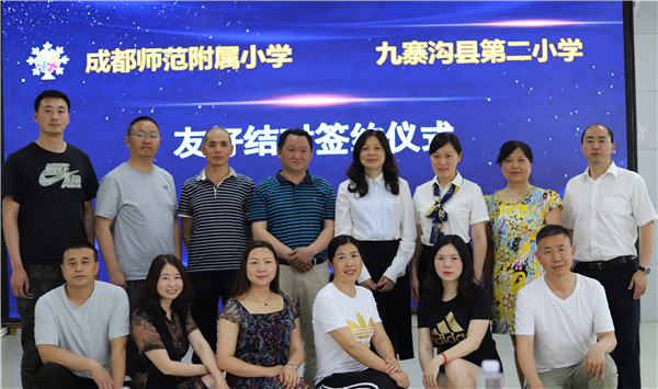为促进优质教育资源共享,搭建校际交流平台,6月5日,成都师范附属小学(以下简称:成师附小)与九寨沟县第二小学友好学校结对签约活动如期举行。成都师范附属小学教育集团校长黄敏洁、常务副校长何琳,九寨沟县第二小学校长邵克月、副校长陈洪清等一行参加了本次活动。活动由成师附小何琳副校长主持。