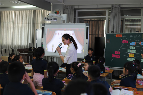 来宾们首先欣赏了成师附小宣传片以及学校雏鹰合唱队在疫情期间录制的“云合唱”曲目——《草》,初步了解了学校的历史和文化。之后,来宾们聆听了姚嗣芳名师工作室成员、成师附小优秀青年教师张庆老师执教的《蜘蛛开店》一课。学生专注、投入的状态,良好的语言表达能力和合作习惯受到了来宾们的好评。课后,张庆老师分享了本课的设计思路,特别强调成师附小的课堂力求让每个学生都参与到课堂学习活动中,使每一个学生都得到适宜的发展。