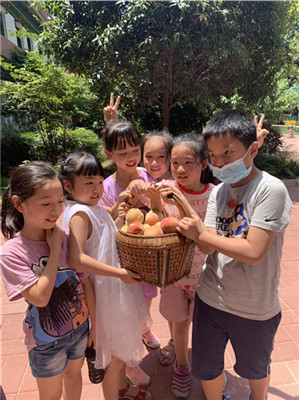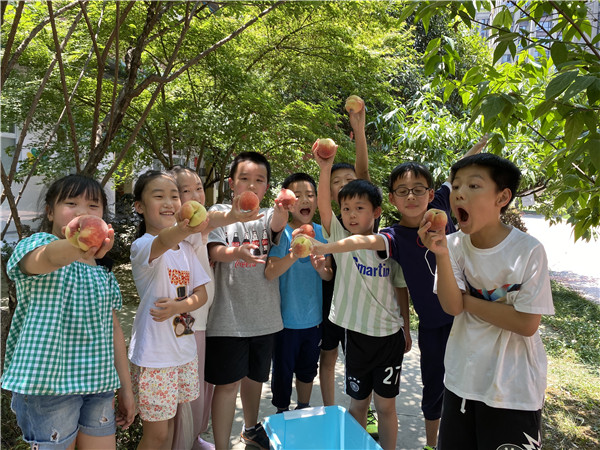 多彩的六月,成都高新区芳草小学的孩子们迎来了一年一度的采摘节。在南区一楼的桃园里,一个个光鲜红润的桃子挂满枝头,诱人的香味在校园里弥漫。