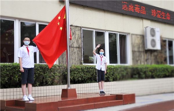 为充分发挥学校教育在毒品预防教育活动中的重要作用,使广大学生认清毒品的危害,进一步增强防毒、拒毒意识,确保“学生不吸毒、校园无毒品”,6月8日,成都市北站小学举行了“珍爱生命,远离毒品”主题升旗仪式。