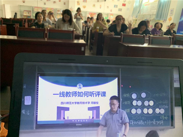 紧接着,周教授为老师们做专题讲座《一线教师如何听评课》。周教授结合教育信息化发展方向和教师专业知识构成,以解北一小课题为例,讲到了教师听评课的视野和策略,提出了经验与数据结合的智慧听评课方式。指导老师们学习看懂各项数据指标和可视化图表,提升了教师利用客观数据诊断问题的新能力,引领教师们尝试应用信息技术变革教学方式。