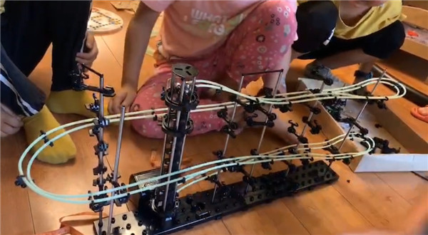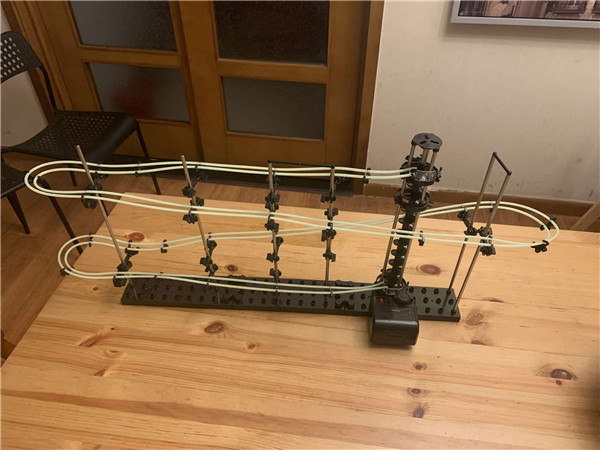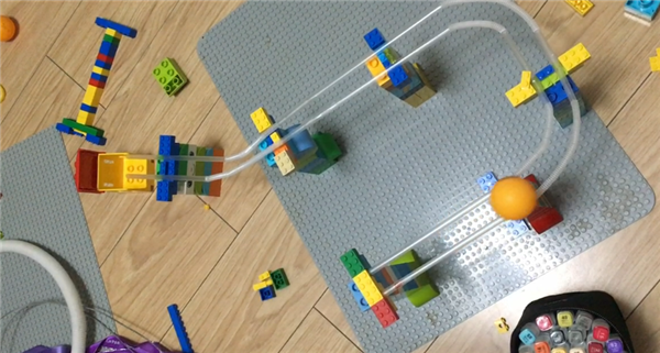 同学们在欣赏了过山车设计稿、了解设计稿的绘制要求后,开始着手绘制属于自己的过山车设计稿(注明拐弯、重叠、起点和终点等),认识安全、经济实惠的制作过山车的材料——泡沫保温管、塑料轨道、防碰撞条、塑料软管等。最后,小组讨论确定选用的设计稿和材料,约定一起制作的时间和地点,反复测试、调整轨道,保证过山车的成功“营业”。
