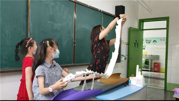 活动在孩子们的欢呼中圆满结束,在回顾与总结得与失的过程中,提醒学生在制作时要满足设计的要求,增加作品的稳固性,要在科学活动中积极思考,将科学精神融入到平时的学习和生活中。