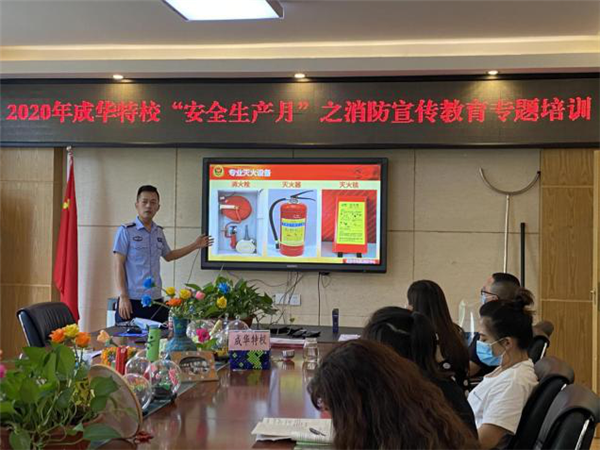 为保障特殊儿童生命安全,维护校园安全稳定与秩序,提升全校教职工安全防范意识与能力。6月12日,川师大特教实验校·成华特校特邀成都利民消防宣传中心龚鹏教官到校,开展2020年“安全生产月”之消防宣传教育专题培训。学校全体教师、保安、保洁工共30人参加培训。