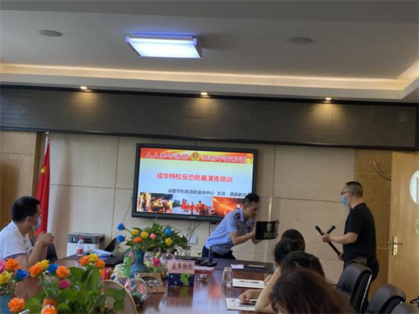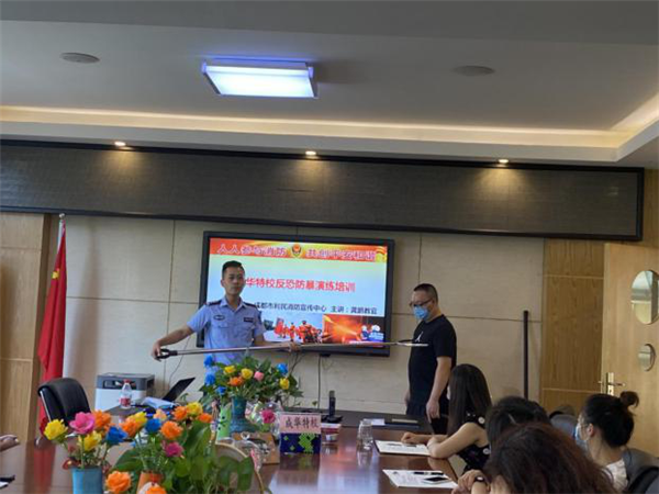 此外,龚教官进行了反恐防暴示范演练,通过场景模拟,为大家讲解安全物防设备——盾牌、钢叉、警棍、辣椒水等的用途、使用方法和注意事项,让教职工深度学习掌握反恐防暴的应急处置技巧与方法。