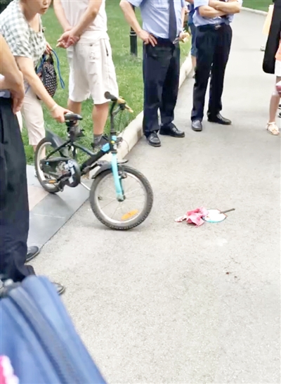 据一位业主称,一个骑儿童自行车的男孩和一位太婆撞在了一起。根据该业主拍下的现场视频显示,小区内部一条环形主道和一根绿化带步道交汇处,一把扇子和一张浸满血迹的手绢掉在地上,旁边围了人,有人扶着一辆儿童自行车,而太婆已经站起身来,用手捂着鼻子。不远处,一名男子抱着一个小男孩。随后,流着鼻血的老人被送上了救护车。