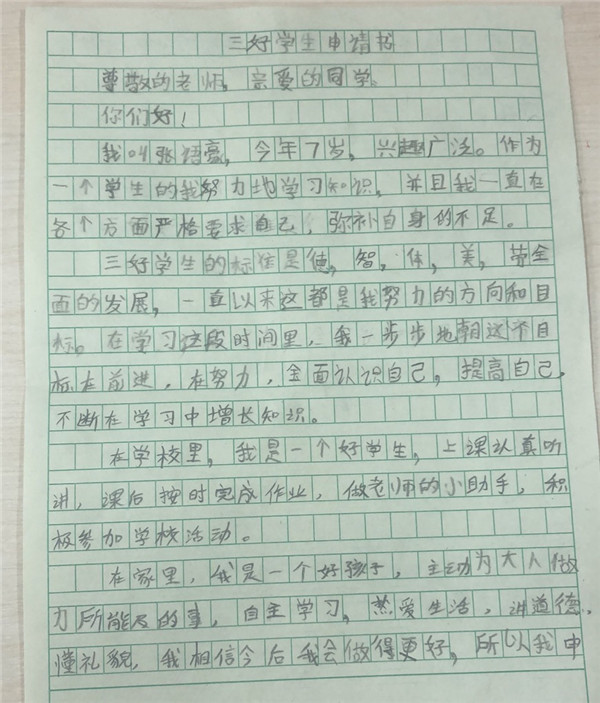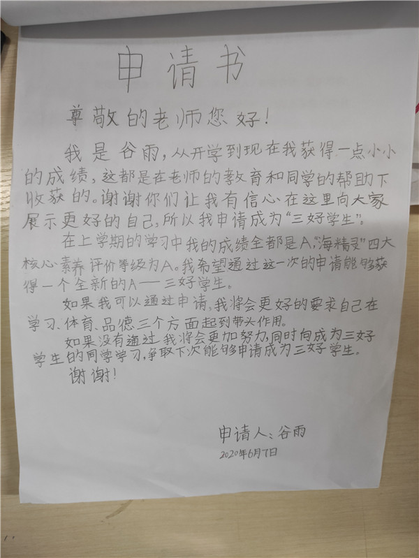 方方正正、横平竖直,一笔一划都写得格外认真,透过这一张张申请书,仿佛能看到一年级的孩子们端坐在书桌前,认真写下“三好”申请的身影。