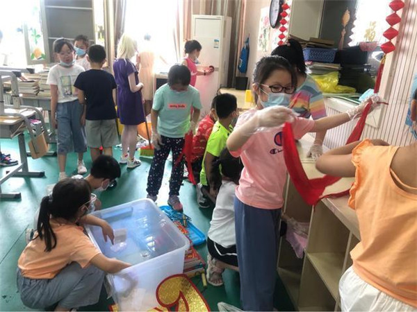 “一屋不扫何以扫天下”。孩子们的小手端起水盆、拿起抹布,一洗一擦间窗明几净;提起扫帚、挥动拖把,一扫一挥间地面洁净如新。汗水从稚嫩的脸颊滑落,而劳动带来的喜悦却在孩子们心间,“辛苦,但是值得!”这是孩子们真实的感受。