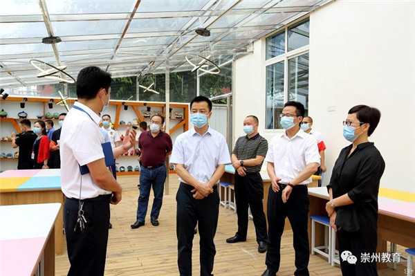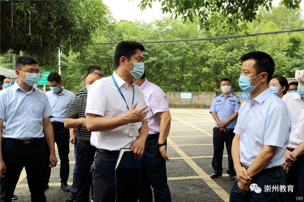 6月22日,崇州市人民政府市长尹念红、市委宣传部部长廖冬雪、副市长郑厚君一行到大划小学指导疫情防控工作。崇州市教育局局长吕鹏、崇州市大划街道党委书记雷文全及大划小学行政人员全程陪同。