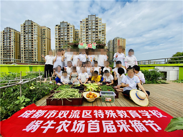 为全面落实党中央国务院《关于全面加强新时代大中小学劳动教育的意见》精神,大力推进五育并举、协同育人的理念,双流区特殊教育学校(以下简称:双流特校)积极探索、开发劳动教育课程,让小蜗牛们(双流特校学生)在与大自然亲近的同时,养成劳动的习惯,体会劳动的乐趣,享受劳动成果带来的喜悦,学校扩建了蜗牛农场,经过前期的深耕细作,6月23日,农场迎来了首届采摘节。