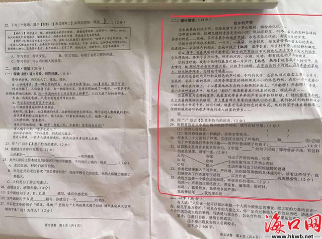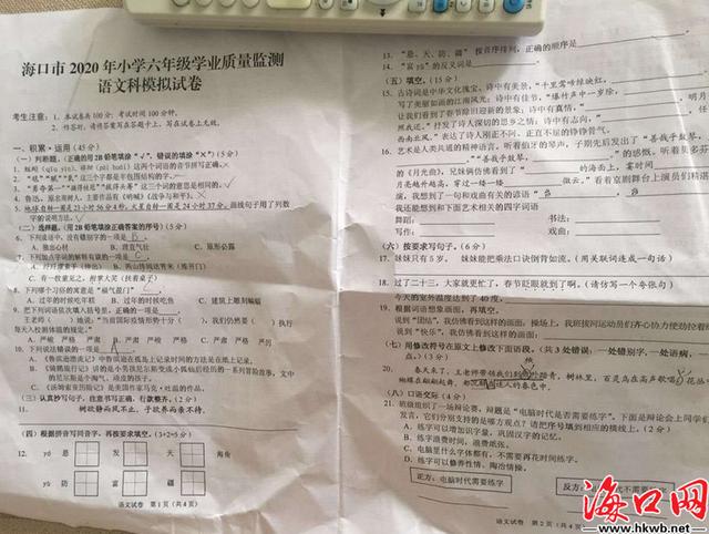 近日,市民陈女士向记者报料称,6月19日,海口小学六年级的学业质量检测模拟考试试题疑遭泄漏。对此,相关部门回复称,此次试题泄密为新东方教员通过一民办校教职工获取题目,并提前发布给部分家长,其行为扰乱了考试的正常秩序,将采取措施对相关单位和人员做出严肃处理。