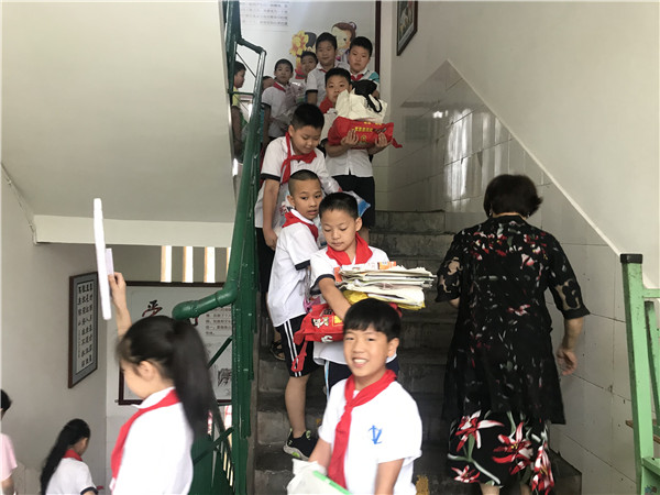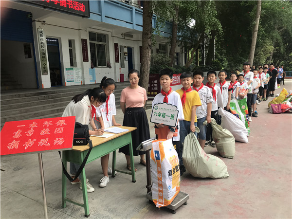 6月28日的大课间活动上,草池小学德育处组织开展了一场“一木环保”主题捐书活动。