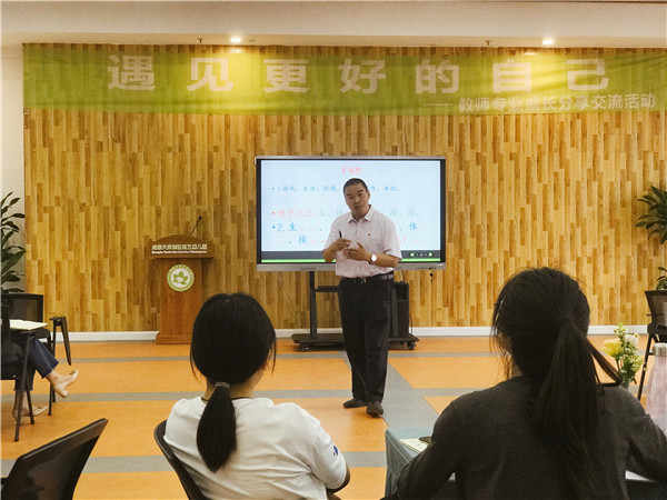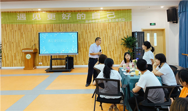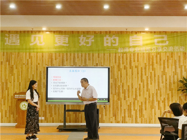 此次愉快温馨的交流活动形式新颖,贺老师和在座的老师们一问一答,不时融入情景表演,互动性高;活动内容丰富,贴近生活而又给人启迪,老师们认真聆听,不断反思。每一次的交流都让教师们在教育路上不断成长,遇见更美的自己!