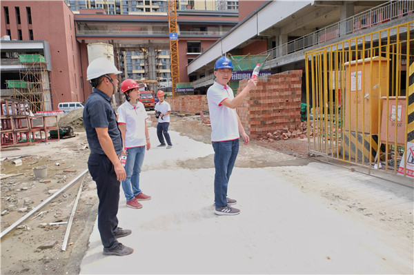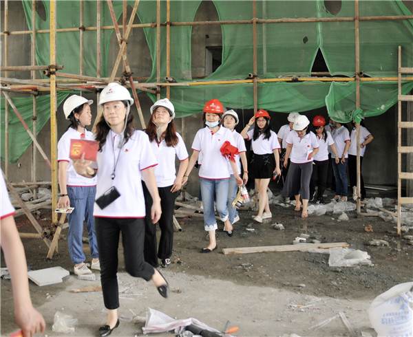 最后,在新校区施工单位——成都建工第五建筑工程有限公司孙小军经理的带领下,党员同志走进施工现场,实地参观了解新学校教室、舞蹈室、美术室、科学室、室内篮球室等,与新校园来了一次亲密接触。