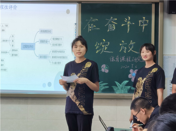 活动伊始,课程室副主任赖蕾蕾对本学期的体育工作进行了总结。她回顾了疫情期间停学不停研、停学不停教、停学不停练、停学不停评、停学不停陪、停学不停思六个方面的工作情况。
