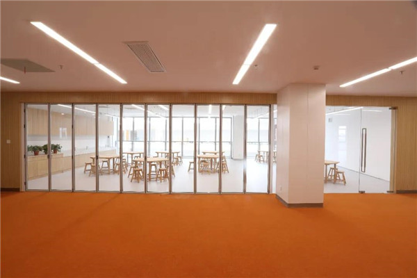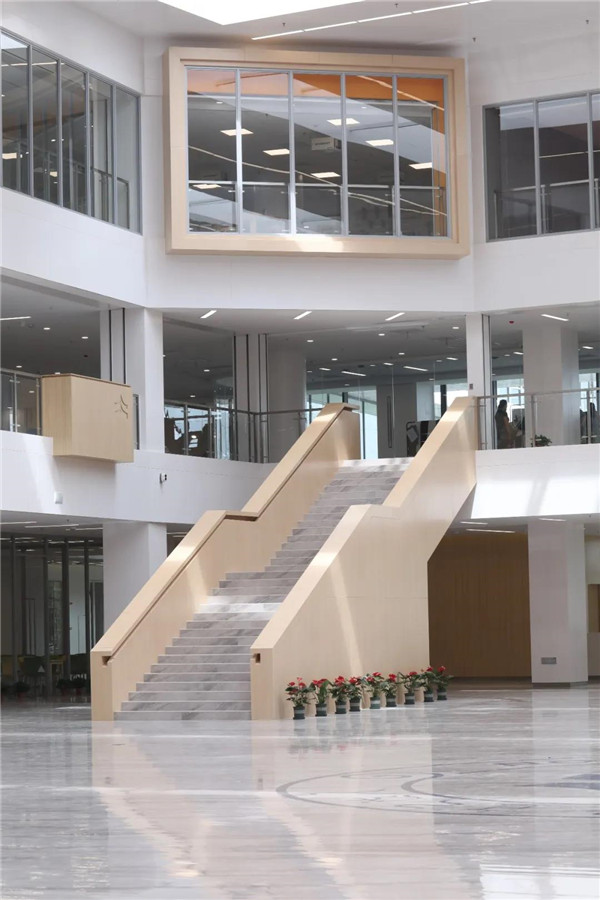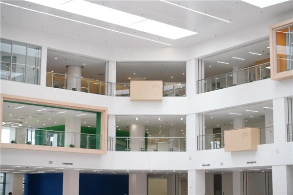 学校设计采用交互式一体空间,全连廊设计,随处可见的阅读区、充分给予孩子们交流互动的空间。学生可以在楼顶阅读、在中庭交流、在廊庭朗读、在草坪上学习、在大树下探索知识、在国学堂之乎者也……