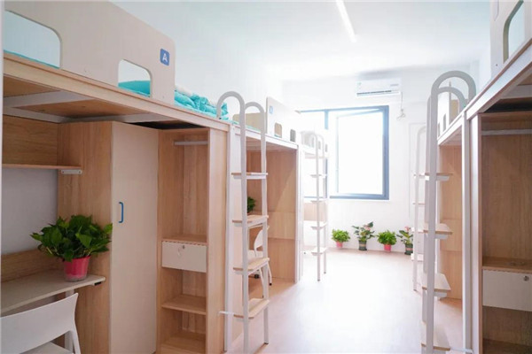 宿舍里学校选用了欧盟儿童家具标准的德贝尔高端床,德贝尔床采用新西兰松木、意大利原装进口ICA水性漆,英国Titus连接器为原材料,环保无污染。小学一年级的孩子们将入住由平层床组成的七人间,而初中的孩子们则将在由上床下桌组成的六人间中度过丰富的青春生活。