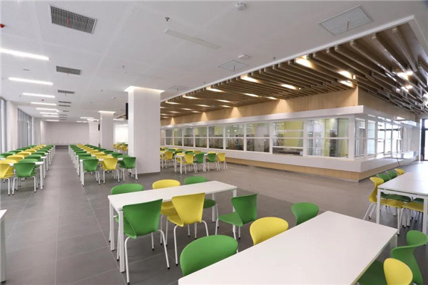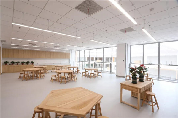学校食为天餐厅,冷暖色交替打造的食育空间,是餐厅,是用餐礼仪的学习与体验,更是生活美学课程。