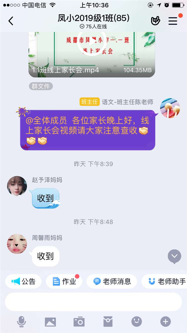 屏幕前的家长们积极性也很高,尽管和往年家长会形式上有区别,但是家长们丝毫没有怠慢。家长们认真观看老师上传的每一个视频,每一个音频,每一个文件,并且积极与老师进行沟通,更真切地了解孩子在学校的情况,了解适合自己孩子的教育方向。