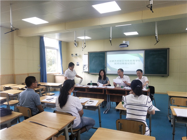 7月8日上午,成都市青羊区特殊教育学校(以下简称:青羊特校)受邀指导成都天府新区特殊教育学校新教师招聘,青羊特校支部书记、校长卞蓉,校长助理唐小红,工会主席王勇,教导处副主任王海燕及行政助理赵敏一行参加此次活动。