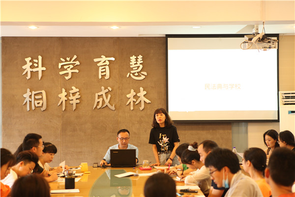 侯律师从近期《民法典》的颁布谈起,简要回顾了我国社会主义法治建设的历史进程,着重阐述了《民法典》对学校教育教学行为及常规管理行为需要注意的相关规定,为大家上紧了依法办学、依法执教之弦。侯律师还从与老师们生活密切相关的角度介绍了此次《民法典》颁布的历史意义。