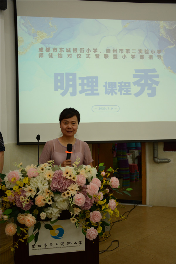 2020年7月9日上午,成都市东城根街小学与崇州市第二实验小学师徒结对仪式暨成都市未来教育家联盟小学部指导“明理课程秀”活动在崇州市第二实验小学开展。“成都市未来教育家联盟”导师朱祥烈校长、陈曦校长、赖晗梅校长及其团队,崇州市教育局吕鹏局长、赵冬梅科长、刘伏元主任,崇州市第二实验小学全体教师参加了此次会议。
